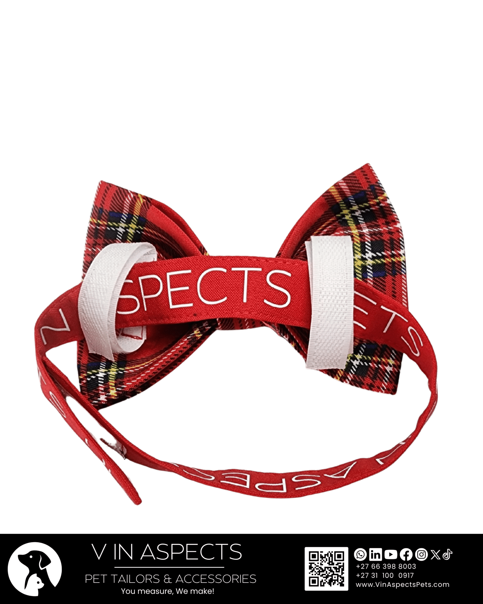 We designed this Tartan Red Christmas bow tie to be the ultimate statement piece of comfort. It features a pre-tied, perfectly shaped knotthat offers Instant, flawless style every time. The adjustable, easy-on velcro straps tie around their collar or harness, ensuring a secure and custom fit in seconds, while being lightweight.  Its structured construction guarantees a perky, poised look that lasts. This clever design delivers big style with zero hassle. Even when your dog is socializing at a park or posing for the camera, they’ll wear their bow with comfortable pride.