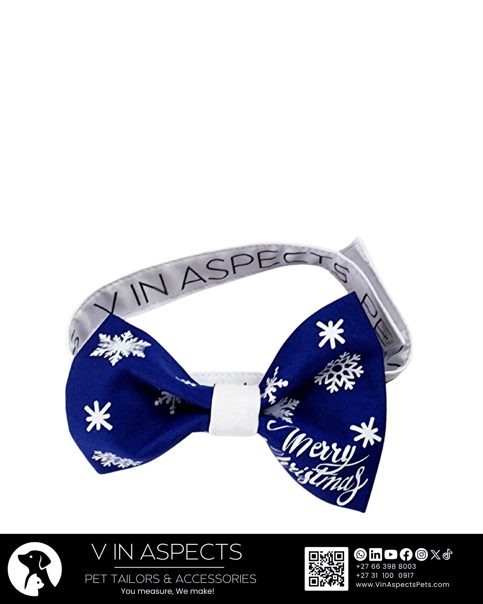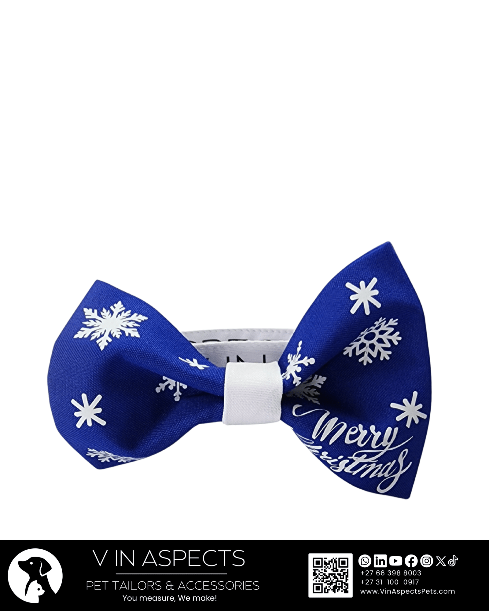 We designed this Let it Snow! Christmas dog bow tie to be the ultimate statement piece of comfort. It features a pre-tied, perfectly shaped knotthat offers Instant, flawless style every time. The adjustable, easy-on velcro straps tie around their collar or harness, ensuring a secure and custom fit in seconds, while being lightweight.  Its structured construction guarantees a perky, poised look that lasts. This clever design delivers big style with zero hassle. Even when your dog is socializing at a park or posing for the camera, they’ll wear their bow with comfortable pride.