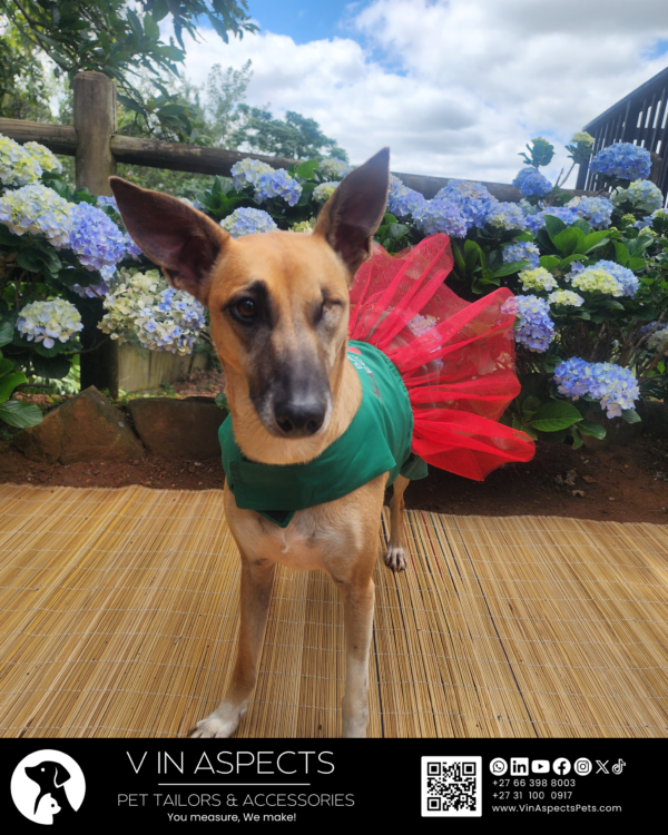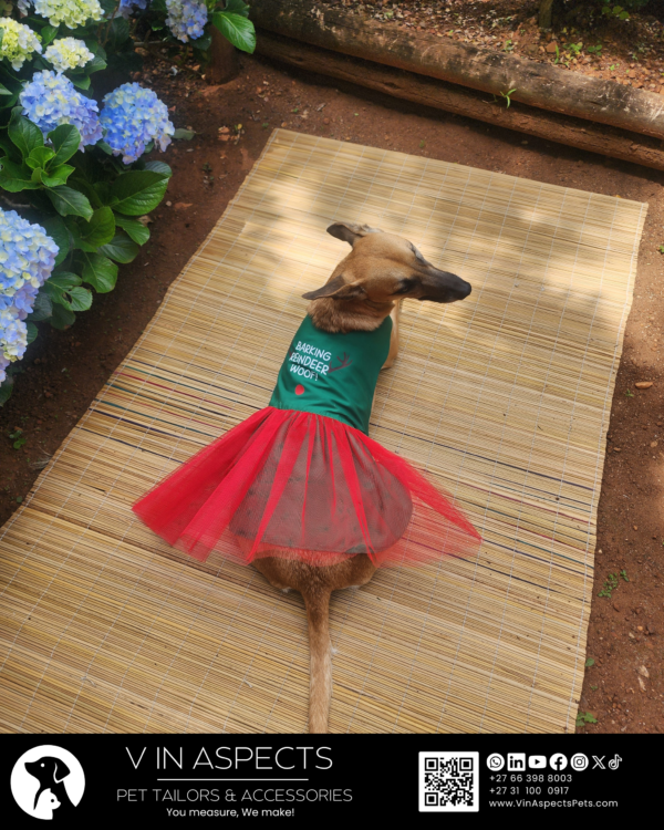 Let’s see what makes this Grinch-Barking Reindeer Woof! Reversible Dog Dress special. One side offers a princess-line silhouette, while the reverse reveals a ballerina tutu. We craft it from high-quality fabrics that are breathable for comfort and beautifully structured for shape. The delicate tulle accent adds that final touch of magic. Inspired by the Grinch and Rudolph the red-nosed reindeer, your pooch is sure to turn heads. Whether your pup is walking in the park or making a grand entrance, they will do it with unparalleled charm.