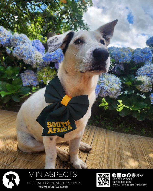 This dog South Africa sailor bow tie is more than an accessory; it is a way to celebrate your pup’s proudly South African spirit and share your love for the green and gold. You can give it as a gift to a dog-loving Springbok fan, or treat your own pup to something truly special. Either way, you’re giving a gift of joy, style, and national pride. Join our family of happy pets and make every match day a celebration with this perfect dog South Africa sailor bow tie – Bokke. Groots! 🇿🇦🏉💚💛