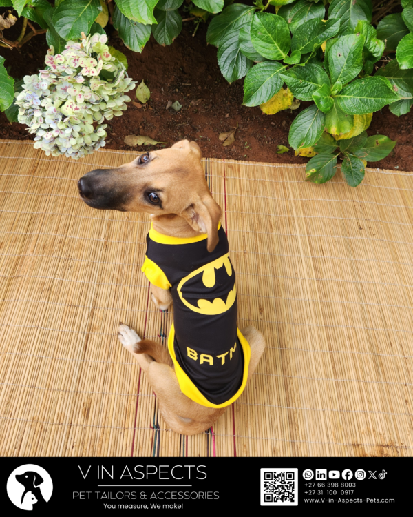 Getting the perfect fit is a simple two-step process. First, determine if your dog is an extra small, small, medium, large, or Extra large breed or mimicking one. Then, within that category, select the specific size (e.g., S1, S2, M1, M2) where the chest circumference measurement best matches your dog. Pro Tip 1: The chest is king! Always prioritize the chest measurement for comfort. Pro Tip 2: If your pet has a short back like bulldog types or a long back like daschhounds, pay special attention to back length. The t-shirt’s hem should sit neatly above the tail for optimal mobility when gliding through the night sky. Always double-check the neck and back length for confirmation to ensure your dog’s Batman t-shirt fits their unique shape perfectly—because even the Dark Knight deserves a tailor-made Batsuit.